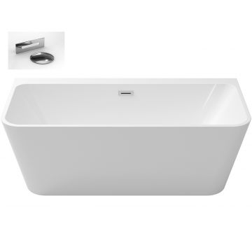 Cada baie freestanding, lipita de perete, alba, 3D, Besco Leya, 170x78 cm